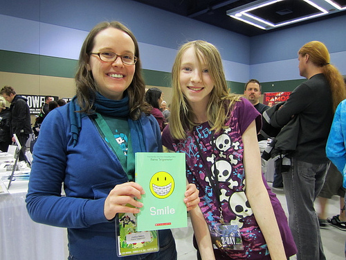 **Smile also made the TOP TEN Great Graphic Novels for Teens list, as selected by the YALSA committee. I was on this list once before, in 2007, for BSC Graphix #1: Kristy's Great Idea, and I am extremely pleased to be here again.