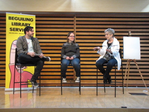 Then later that night, *I* had the honor of interviewing Lynn and Kate Beaton, of Hark! A Vagrant fame. These women are two of Canada’s guiding lights of cartooning, albeit from different generations…and I was given the challenge of finding their common ground, on stage, in front of 450 people!
