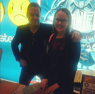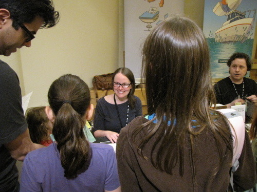 Here’s YA author extraordinaire Rainbow Rowell sitting at our table, pretending to be Dave while he was off on a panel–I got to know Rainbow this weekend, and she is awesome, and I can’t wait til her graphic novel with Faith Erin Hicks comes out in a few years!