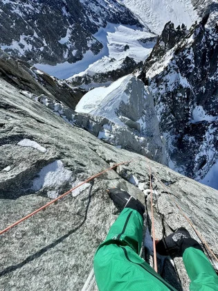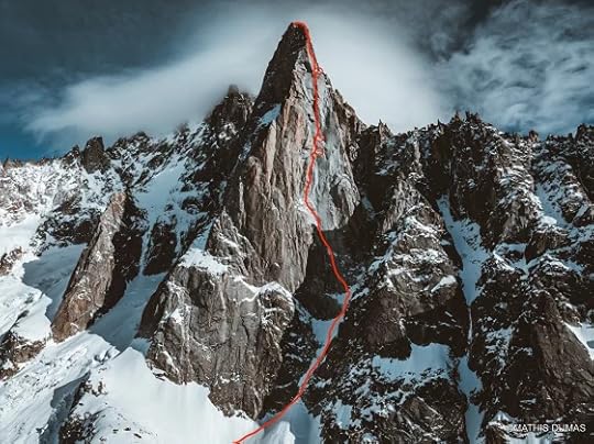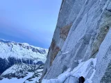 Истинска лудостВ края на февруари 2025 г. френският алпинист Бенжамин Ведрин извършва самостоятелно зимно изкачване по маршрута BASE на Западната стена на Дрю в масива Монблан – 1000-метров маршрут, 7a.