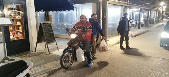 Разбира се, освен кмет в сянка, нашият хост има кръчма, брат с който я стопанисват, собствена маслинова гора, портокалова плантация и огромно сърце! Бяхме му гости в таверната. Ние и още две-три маси. От менюто имаше само това, което му бяха донесли рибарите. Другото го купи от колониала. Велико!