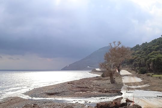 Снегът белееше по върховете, а Тото ни поведе към края на света. Пътят по северната страна на Самотраки преминаваше през разливи и каменопади и завърши в нищото – Краят. Заваля. Настъпих умряла коза. Нямаше стрес. Има ги много. Странно място. Само Голямата мечка го нямаше да запее индианските молитви…