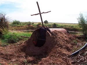 Така би изглеждал автомобилът на Мегий в пустинята, който така и не е открит (снимка: стоп кадър от видео на Depth Zero)Друго негово твърдение е, че е спрял, за да помогне на трима мъже, които са останали без бензин, но е бил нападнат, когато е излязъл, и е бил повален в безсъзнание. Той казва, че са откраднали камиона и обувките му, преди да го изоставят в плитък гроб в пустинята,… въпреки че са били достатъчно любезни да го оставят с малко над 12 долара в джоба му.