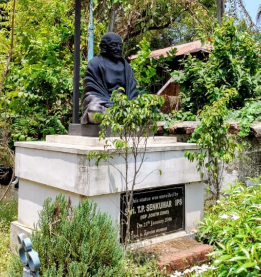 The second, smaller statue, located at the entrance of the station was of Gandhiji, and the plaque read: “This statue was unveiled by Shri. T.P. Senkumar IPS (IGP, South Zone), On 25th January 2006.”