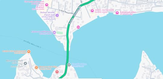 When I checked Google Maps, it showed me an alternate, but shorter, and walkable return route straight to my home. If I took this route, I could skip the bus altogether and reach home within 20-30 minutes, the same time I had spent earlier, walking from Anchukallumoodu to Thirumullavaram beach. I guessed it must be the same route my brother always takes for his evening walks to the beach, and followed the Google Maps instructions.
