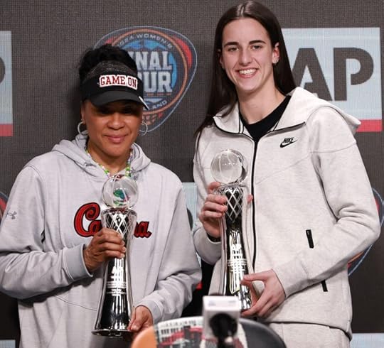 Shoot forward to a few weeks ago, Dawn Staley and Caitlin Clark planted another flag in our craggy climb to recognition and equality. Unhampered by the “nervous fatigue” warning from starched collar Victorian men. Bowing to none who forced women’s teams to pay their own way until Title IX, they played. They played to a packed house of 24M, almost double the audience for NCAA Men.