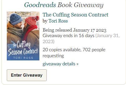 The Cuffing Season Contract is available TODAY! Click on the picture below to grab it. It’s available with your Kindle Unlimited subscription and will be the pre-order price for a week. After that, it’ll be regular price, so grab it for 99 cents while you can!