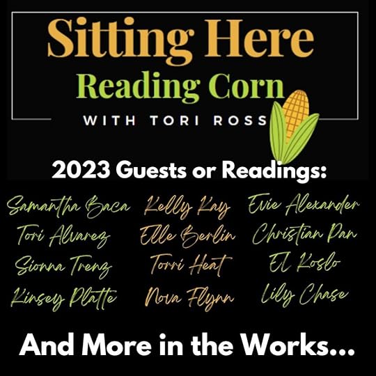 Now that 2 episodes of Sitting Here Reading Corn with Tori Ross are up and running on Spotify here, I thought I’d give you an idea of who I have coming on the show later this year. I’m super excited and almost completely booked for the entire year. Thank you to all the authors that agreed to be put on the spot and read their “corn.” This is not an exhaustive list since I have a few authors that don’t want to read their own corn and will have Chrissy, my old co-host from The Smutty Book Lady and Friends, read their work.