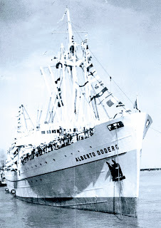 La imagen es del barco Alberto Dodero, el barco real en el que mi madre hizo aquel maravilloso viaje.
