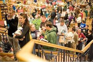Authors set up a table inside the store and sell to passing shoppers. You retain 62% of the sale.