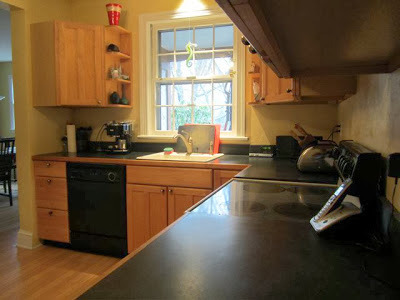 But it is time to go. To replace the wobbly electric oven (on such a slant that the frying eggs run like sprinters to the back of the pan and coagulate there, in a long white/yellow line) with a gas stove. To exchange peeling formica for something that shines. To get a dishwasher that makes the dishes cleaner when they come out, as opposed to encrusted with wrong hues.