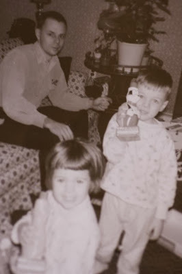 I especially like this picture here, of my father, my brother, and me. It's Christmas in Woodbine. We're happy.