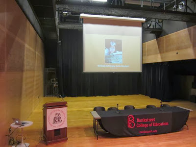 Yesterday, New York City beckoned—a chance to talk about some of the young people I've taught before a wonderful audience at Bank Street (thank you, Jennifer Brown), a review of Voice in a mentor workshop (we talked The Book Thief, Two Boys Kissing, Small Damages), a quick run through the wonderful exhibit of children's books at the New York Public Library with special people, lunch with my son and husband, a hurried walk through Hoboken, a drive back home in twilight hours.