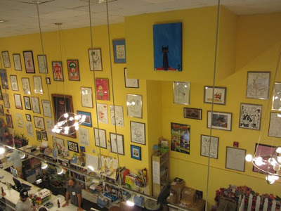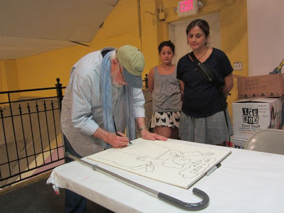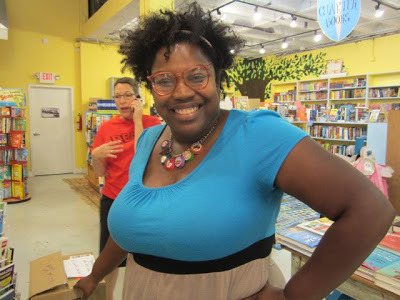 I was there on behalf of Handling the Truth, but Jess and Doni immediately took me under their wings, walking the town with me, sitting down at lunch with me, and finding, with me, a copy of Small Damages in the window of The Little Shop of Stories. We stepped inside this amazing store, and at once I was embraced by the shopkeepers, who had been warned of my coming by no other than Judy Schachner, whose image graces the wall of the Philadelphia International Airport (I had snapped the picture at dawn that morning) and whose beauty I was just writing about the other day. They had been told, by Judy, to take good care of me, and oh did they. They were like family, from the start. Diane Capriola (shown above with her daughter, watching Tomie draw), you run an exquisite enterprise. Thank you for your graciousness toward me.