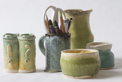 my pottery collection, as photographed by my husband