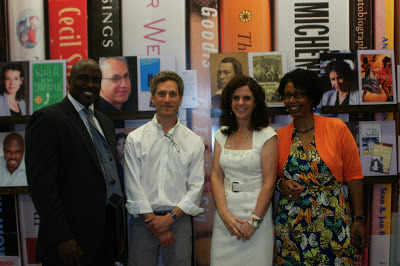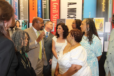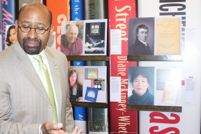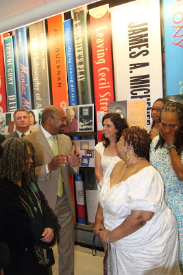Among those photographed here: Mayor Michael Nutter, Siobhan Reardon, Andy Kahan, Karen E. Quinones Miller, Lorene Carey, Sonia Sanchez, Diane McKinney-Whetstone, Solomon Jones, Teri Woods, Judy Schachner, Charles Fuller, and Michael Swanwick. Rosellen Brown is featured behind the Mayor. I was amazed to find The Heart is Not a Size, Nothing But Ghosts, and You Are My Only as featured book spines, and am proud that Flow: The Life and Times of Philadelphia's Schuylkill River, Handling the Truth, and Small Damages are featured in the author panel.