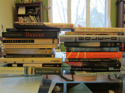 Yesterday I raved about Swimming Home . This past weekend, in the Chicago Tribune, Reply to a Letter from Helga. A few weeks ago, The Colour of Milk , and before that You Remind Me of Me, The Orchardist , Boleto , Book of Clouds, Out Stealing Horses, The Disappeared, American Music , The Sense of an Ending , the Alice McDermott novels, the books featured in this yellowing snapshot above (and others). These slender books that devastate with their shimmering, dangerous sentence, structure, form. These books that have left me staggered on the couch.