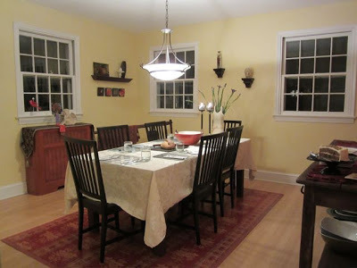 This is my home, my table where I sit with family and friends. Tomorrow I'll take this spirit of community (pretend there are flowers, pretend there are candles), and we'll talk.