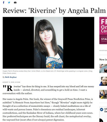 My review of Riverine, the Graywolf Press Nonfiction Prize winner, by Angela Palm, in Printers Row (Chicago Tribune). Click the link here for the full review .