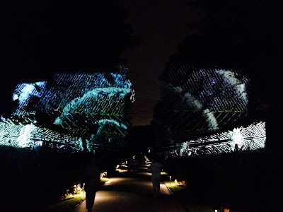 We walk Longwood differently now when we go. Last night we went to experience Nightscape, the extraordinary sound and music show that runs from August through October. It's a seduction. A magic experienced in the dark of night among others whose voices you hear, whose passing bodies you're aware of, but whose faces mostly remain obscured. Trees and fronds are canvases. Long walkways. Ponds. Flowerbeds. You find your way. You look up. You stop to see.