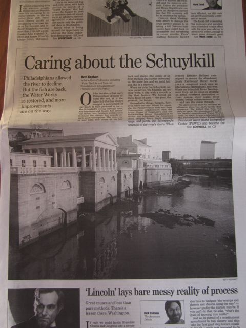 Among the river-loving friends I have made along the way is Karen Young. The story that appears in this weekend's Philadelphia Inquirer celebrates her achievements at the Fairmount Water Works Interpretive Center (FWWIC) and the future of Philadelphia, a city finally going green.