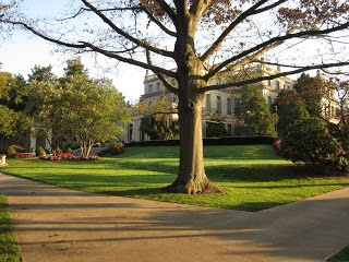 Monmouth University, where the Glory Days Symposium was held, is a green campus, architecturally cohering and whole. At its center stands Wilson Hall, a Horace Trumbauer designed mansion originally built, in 1929, as the private residence of F.W. Woolworth Co. president Hubert Templeton Parson. In the summer of 1916, in a building lost to fire on this same site, Woodrow Wilson worked through his presidential campaign. If this Trumbauer building looks familiar to you, that's because it served as the set for the movie, Annie.