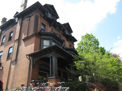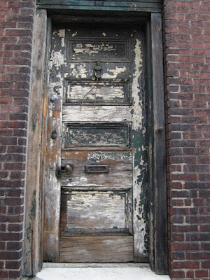 This is not the front door to my son's new apartment (which, if all goes according to a wobbly plan, we will move him into over the weekend), but it is the door that sits across the alley from my own former city home. It has the kind of character I look for in old things. It tells a story.