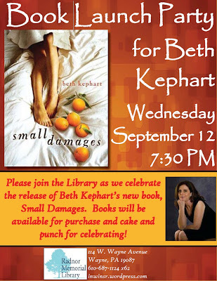 The Small Damages Launch Party: Radnor Memorial Library, September 12.
