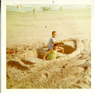 I share the first paragraph of my remembrances of, and nostalgia for, Stone Harbor, below. But before I do, I'd like to share this—a photograph of my brother and sister, sand sculpture-ers supreme, taken years ago.