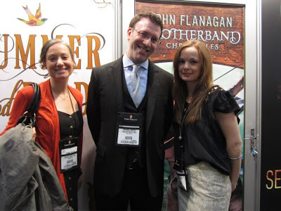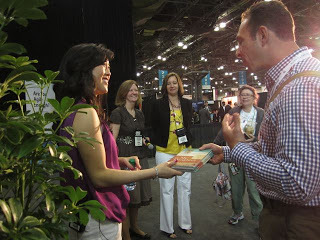 I rose at 3 AM, walked the just-before-dawn streets, took one train and then another (much, oh much too much delayed) train, then ran the long blocks toward the BEA. I was, shall we say, windblown by the time I arrived. But there to greet me were the ever-lovely, ever kind Danielle (There's a Book) and Florinda (The 3rs Blog)—first-rate bloggers and people. It was about time I met the generous Danielle. About time I gave Florinda (who was my unofficial publicist last year at the BEA) another hug.