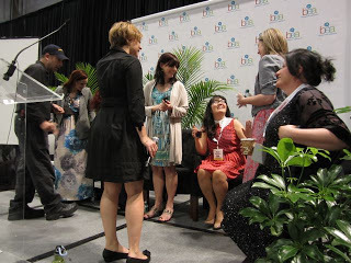 From there to see my dear friends at Philomel, to meet more of that tremendous team, and to finally say hello to the phenomenal Ruta Sepetys in person; she has a new book coming out that I think will be just as amazing (in many different ways) as Between Shades of Gray. From there to listen to four of the buzz adult authors talk about the process, their books, their hopes. A beautiful interlude with Lauren Wein. Then to sit in the audience of Jennifer Brown (the fantastic children's editor for Shelf Awareness) and Kristi Yamaguchi, an Olympian with a heart of gold. A run from the Downtown Stage to the Uptown Stage so that I could sit in the front row (all other seats were gone) of the YA Buzz panel, featuring, among other people, Melissa Marr, Jenny Han, Tonya Hurley, and my friend Siobhan Vivian.