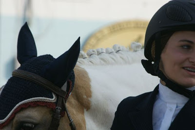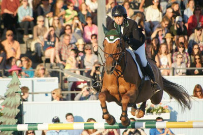 I also wish to say that I had the privilege, hours ago, of standing at the rails at the Devon Horse Show and watching Jessica Springsteen, Bruce's daughter, float above her gorgeous horse. She is a distinguished rider and person, this Jessica Springsteen. She made it to the jump off, rode last in a tough, brave field. Here she is in a bold attempt to best a toweringly fine time.