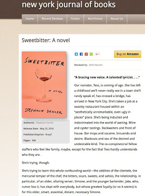 Seeking an early copy of the book for Nina, I asked the New York Journal of Books if I might review it. The kind editors there said yes. I got the book, read the first intriguing pages, carried it to Penn on a Tuesday and handed it to Nina, who read—with Nina-style care. Then Nina (who, by the way, is headed to Columbia University's J school) Skyped with Danler herself. Nina thought. She pondered. She ultimately percolated her wonderful restaurant narrative with scenes from Sweetbitter and insights from the author.