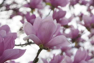 Late in the day, still the feeling of night on my skin, the weirdness of the exchange in my heart, I went outside to take a walk. Outside, in the world, I discovered, everything is white and yellow, pink. It is magnolia trees that bloomed too soon and are shaking their tresses to the ground.