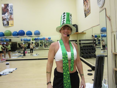 Maybe (technically speaking) going to the gym today was not the smartest move. I'm still battling vestiges of this month-long flu and my balance is not, shall we say, terrific. But I was missing Teresa and her Saturday morning Body Combat class at Club La Maison. I was in need of some air-punching, knee-stomping, kick-slapping action. And besides, it's St. Patty's Day. Teresa is always good for a holiday.