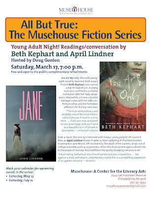 I first wrote about Musehouse long before I had had a chance to visit. Last night I was honored to share the mike with April Lindner (who wrote Jane and has Catherine forthcoming) and Doug Gordon, a writer I met in 1997 when we both won a Pennsylvania Council on the Arts grant (along with Justin Cronin, who went on to write The Passage, among other things).