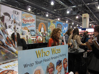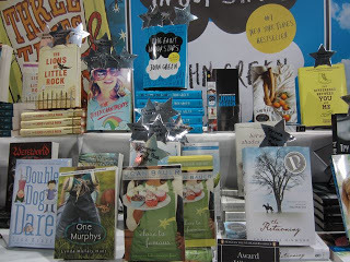 When I wasn't busy being starstruck by my own shelf position (I hope you all do know that I am kidding; I am biologically predetermined never to be self-starstruck), I was taking photographs of the real stars—people like Carl Hiaasen and Gayle Forman, pictured here. I was also running around looking for my dear friend Siobhan Vivian, whose THE LIST is due out soon (check back here for more on that soon). Siobhan and I never found each other (sadness and sobs) but we got to talk for a long time on the phone as I took the train home. Making the day even more special.