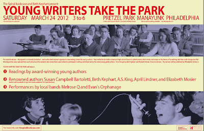 We'll be joined that day by the greats—Susan Campbell Bartoletti, A.S. King, April Lindner, and Elizabeth Mosier. We'll be serenaded by local bands Melrose Q and Evan's Orphanage. And we'll have teen writers from throughout the area on hand for a special writing workshop, not to mention a special celebration of the winners of a teen writing contest.
