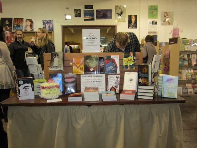 I love book launch parties, and last night's party for K.M. Walton (at the Chester County Book & Music Company) was nothing short of spectacular. I believe the entire state of Pennsylvania showed up, and then some. I know there was love in the room. You would have thought we were attending a basketball game, given all the whooping going on, the whistling and cheering. It takes a long time to write a book, a long time to sell it, and then there's that stretch of awful lonesome when you don't know who will care about what you've done, or if anyone will buy it.