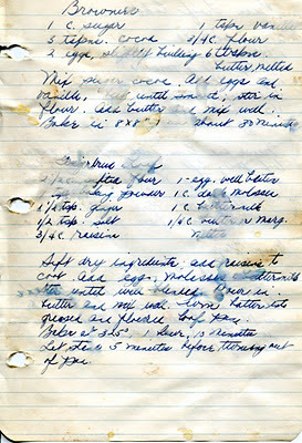 We will spend Thanksgiving with my brother and his family, my father, my sister, and her eldest. I wanted to bring some of my mother along, and so I am making her brownies. Here she is, on the page as it appears in her book of handwritten, hand-clipped recipes. Many of them stained. Some of them missing temperature instructions (she had everything in her head). Everything delicious.