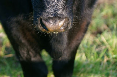 I thought of the herd of black cows I'd photographed late Sunday afternoon. I thought of this one, mud on her nose, a bit of a smile behind those whiskers.