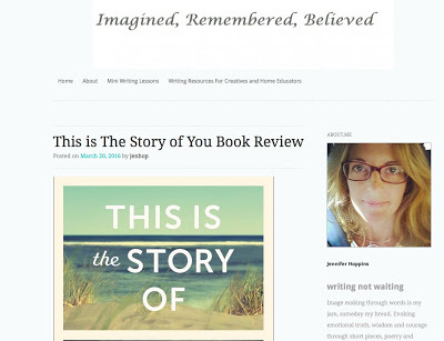 When I returned from New York, I learned that Jennifer Hoppins, a beautiful writer who had received Story as part of a giveaway, had been working on a review of the book for her blog, Imagined, Remembered, Believed. It's a rather extraordinary review—a weaving together of fictions and personal truths, a gorgeously written post about life and loves.