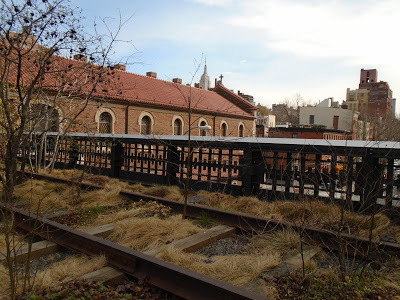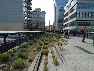 This past weekend, among many other things, our son introduced us to the High Line, a walk I've wanted to take since this 1.5 mile stretch of former railroad tracks was reinvented as an urban escape. Weaving over rail yards, through the shadows of rising towers and old churches (or at least one old church), beneath the branches of soon-to-be-blooming trees, and beside bold art, this was my kind of slice of urban paradise.
