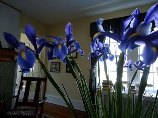 We were having a special dinner. We needed flowers. These are the ones my son carried home—violet skinned and bright eyed. This morning I worked for several hours, then stepped outside toward sky and sun to clear the dead glad stalks from the feet of the rising daffodils and collect the twigs knuckled down from the recent storm. I have never taken the sanctity of home for granted, and in the wake of news like we've had, in the wake of all the tremendous sadness of Japan, I am ever more cognizant of how lucky I am, how rich in life, to set flowers down into a well of fresh water in an unbroken vase on a table that is steady, rooted, calm. Books in the background, photos on the wall, things in their place. My place, here, now.
