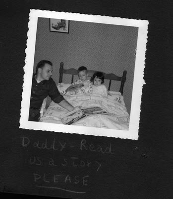 Where does our love for stories begin? Who yields to us the possibilities? Of what is an author made—or a dreamer? It started for me, way back then, with parents who loved me, and who loved one another. This photograph is taken from a scrapbook that my mother began for my father in the early 1960s. It was his Christmas present. My parents were only just beginning to build their lives, but my mother understood that it was important both to live well—alivedly, happily, with music, with puppets, with hula hoops and fanciful cakes—and to remember how that living had gotten done. She captioned the photos she collected for my father, pasted them onto black paper, and in her Christmas note to him wrote that, "It's not very evident at times, but I did restrain myself from being too corny."