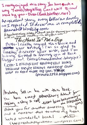 Today, thanks to the generosity of Sara and Drea at travelingarc.blookblather.net, and thanks, too, to Word Lily, Readergirls, Nomad Reader, Hope Princess, Bookworming in the 21st century, and Read What You Know, I had one of those moments when I opened my mail to discover the traveling arc of The Heart Is Not a Size c...