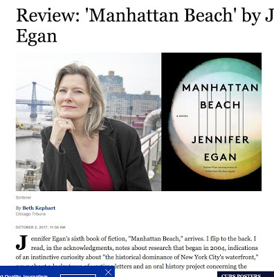 Last week I had the opportunity to read Jennifer Egan's Manhattan Beach, an historical novel of surpassing... everything. My rave review, in the Chicago Tribune, is here.