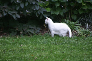 There she was. White, pure, perfect with her imperfectly matched eyes. I reached for my camera, opened the door, thought only to photograph her from afar, but (I swear to you), she turned and began hurtling toward me—zipped through the green with jungle speed and took the por...