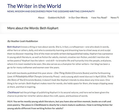 And so, today, that interview goes live. I'm talking about the difference between writing for adults and teens, the frustrations I've faced, the stuff I don't do well, and the life choices I make, on a daily basis.