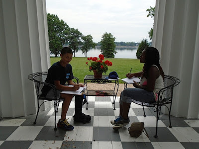 Together we explored the grounds, hunted for magic, metaphor, and simile, collected turkey feathers, studied a recreated grapery, discovered portraits of George Washington and Napoleon Bonaparte, searched for colors, listened to the 1886 words of Biddle's Aunt Kitty, pondered departures and returns, and interviewed one another.